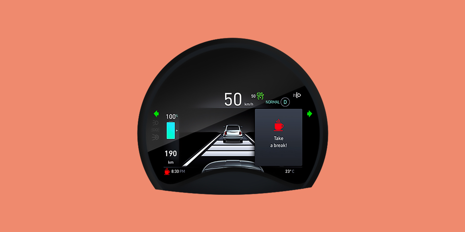 500e can brake automatically to avoid or mitigate collision with a vehicle in front, a pedestrian or a cyclist, at up to 80 mph (where legally permitted). Initially the car alerts the driver with an acoustic and visual warning in the instrument cluster. If the driver does not respond, the car brakes helping to avoid or mitigate potential impact.