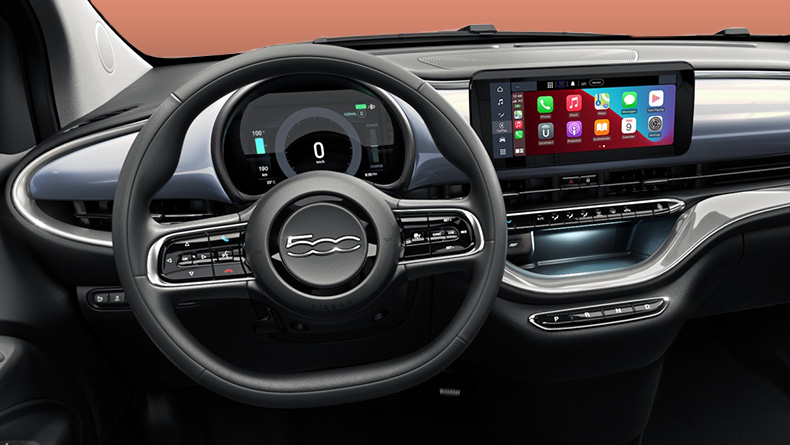 Step into 500e Icon and embrace a new standard of everyday elegance. Its interior is designed for comfort and style, featuring a soft-touch steering wheel and a seamlessly integrated 10.25’’ Touchscreen Infotainment system with 4 speakers for an immersive sound experience. With sleek 16" alloy wheels, the 500e Icon blends classic charm with modern attitude.